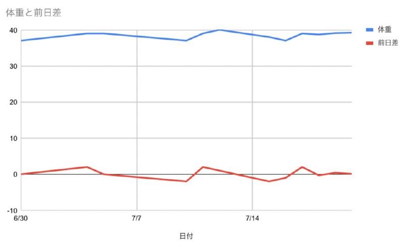 毎日れもんの体重を計測しています。 れもんの体重はそれなりに増減していますが、大きな変化はなさそうです。 下記にれもんの体重のグラフを載せておきます。