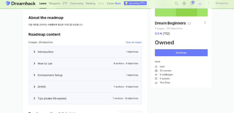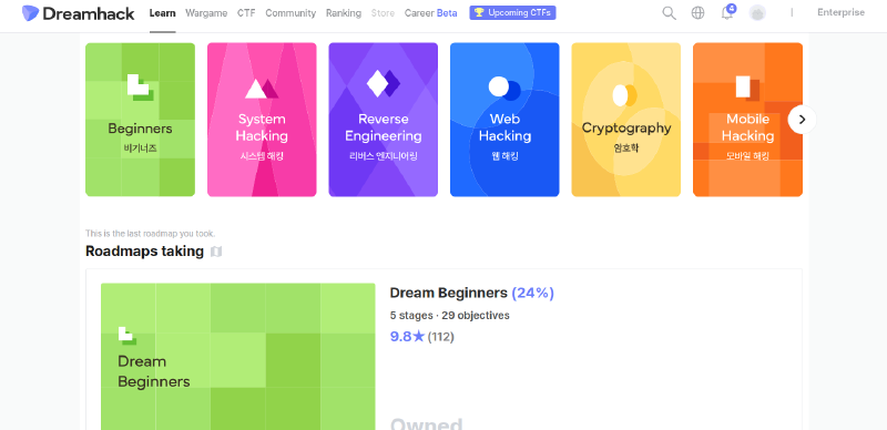 DreamhackはCTFのコンテストを開催しているのはもちろんのこと、 幅広いジャンルの教育講座も充実しているため、 かなり初心者にも優しい気がしました。 また、サイト上では韓国語も使われていますが、 教育講座の説明文は私が確認した範囲では英語で書かれていたのである程度は読めると思います。