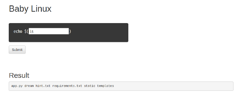 - ※app.pyを見るとコマンド内に「flag」という文字列があると弾かれるっぽいのでワイルドカードを使う