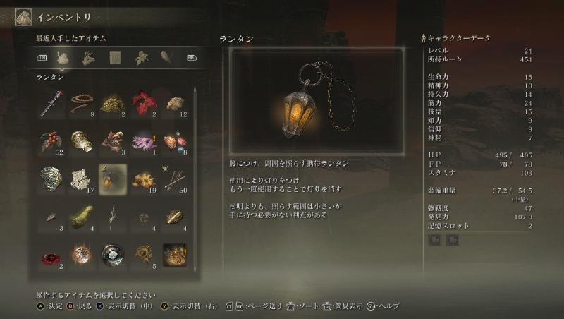 洞窟はランタンがあると便利です。 手に持つ必要はなく、 アイテムを使用するだけで明るくなります。 南の半島の商人から購入しました。