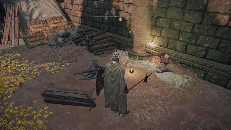 円卓の奥の扉が開いて急に闇霊みたいな人が現れました。 最初のムービーにも出てきた糞食いと呼ばれている人っぽいです。 明らかに敵っぽいですが、よく分かりません。 ちなみに、この後鍵をくれて「俺を牢屋から出せ」みたいに言ってきたので、 一応助けてあげました(王都についてからの話です)。