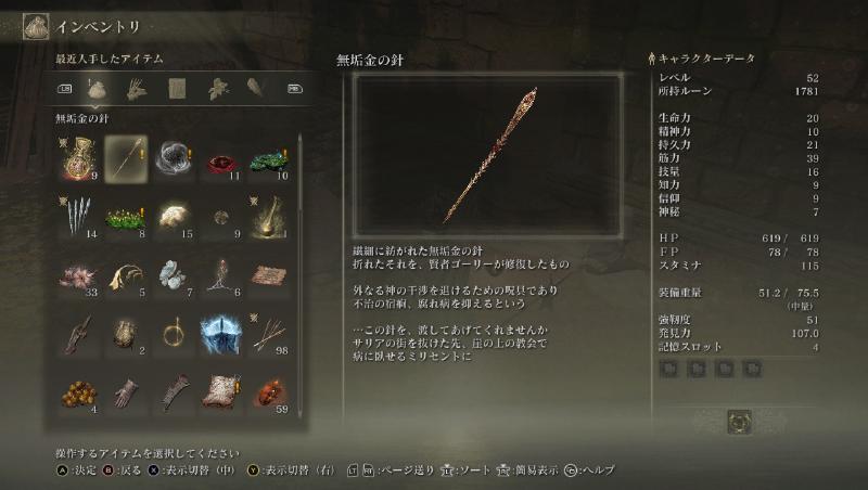 2022年2月25日に発売されたフロムソフトウェアの『ELDEN RING』(以下、今作)を今更ながら初見でプレイしています。 現在は順調に進んでいて、大ルーンを持った二体目のボスも倒せました。 レベルもどんどん上げているので、そこまでどん詰まりすることは今のところありません。 この調子でクリアまで楽しんでいきたいですね。