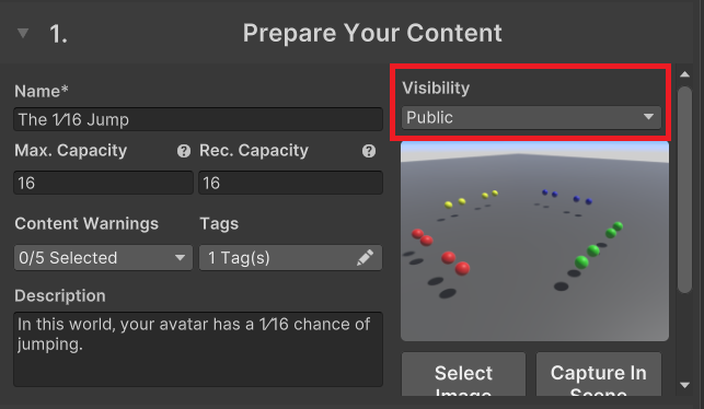 トラストランクがUserになるとワールドアップロード時にVisibilityで「Public」(最初はpublish to Community Labsだったと思う)が選択できるようになりました。 これでワールドをパブリックとして公開できるようです。