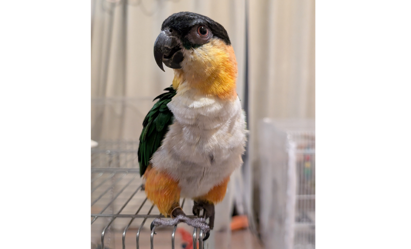 ズグロシロハラインコのぐぐも元気です。 我が家で一番大きくて嚙む力も強いです。 ぐぐはじゃれているつもりかもしれませんが、 人間の指に穴を開ける勢いで噛んでくるので注意が必要です。 甘噛みの時も多いので油断しているとちゃんと穴が開きます。