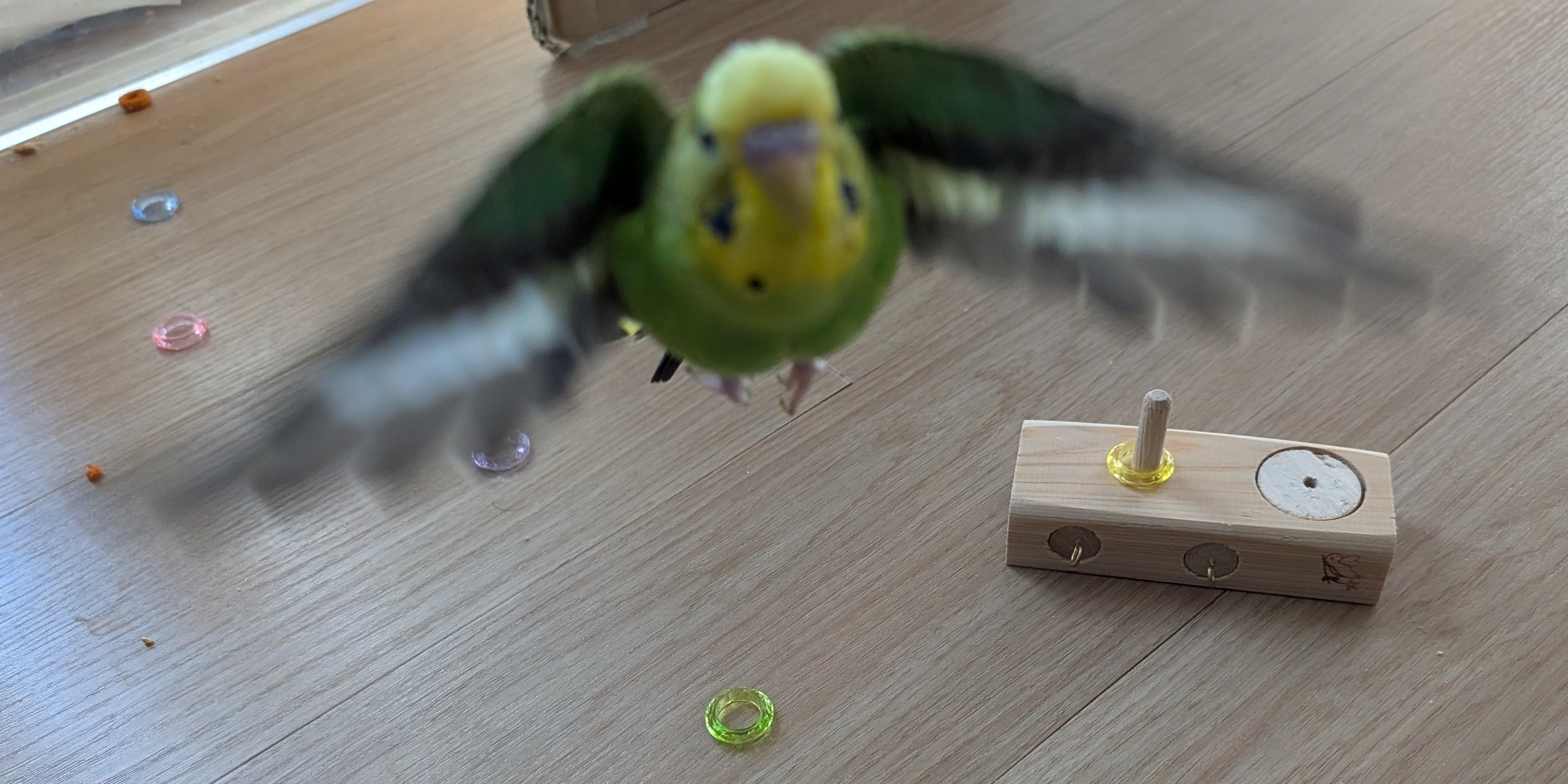 はじめに 今週もセキセイインコの「れもん」とズグロシロハラインコの「ぐぐ」は元気に暮らしています。 ぐぐは少しずつ我が家に慣れてきていて、自主的に遊べるようにもなってきました。 れもんはいつもどおり自由に遊んでいます。 この調子で仲良く元気に成長してほしいですね。 ということで、今回もれもんとぐぐの記録を残していきます。 キメ顔のぐぐ↓ キメ顔のぐぐ 関連記事 前回の記事 2024年10月12日の日記です。 我が家のインコ「れもん&ぽぽ&ぐぐ」の日記14 : 大人に近づくれもんと遊ぶ余裕が出てきたぐぐ 我が家におけるインコの飼育方法 2024年現在の我が家でのインコの飼育方法をまとめました。 インコの飼い方と注意点(2024年版) 注意点 私たちは鳥を初めて飼うため飼育方法に誤りがあるかもしれません。 これからセキセイインコやズグロシロハラインコなどを飼うという方はこのブログの情報を鵜呑みにせず、参考程度に読んでいただけますと幸いです。 いかなる場合でも責任は負えませんのでご了承ください。 新しいぐぐのおもちゃ ぐぐの鳥籠に輪っかのおもちゃを新しく取り付けてみました。 ぐぐも興味津々のようです。 最初は上に乗っかって遊ぶ感じでしたが、 少しずつ輪っかの中に入ろうとしてくれています。 ぐぐの新しいおもちゃ テントに入るようになったぐぐ ぐぐはテントの上に乗るのが好きだったのですが、 最近はちゃんとテントの中にも入るようになりました。 テントの中を通ったほうが移動が速いということにも気がついたようです。 テントに入ったぐぐ マスカットを食べるぐぐ マスカットをもぐもぐ食べるぐぐです。 甘すぎるとあまり食べないのですが、 甘さ控えめだとガツガツ食べている印象です。 マスカットを食べるぐぐ 落花生も食べるぐぐ ぐぐに落花生をあげてみたところ、 中身は捨てて殻をかじって遊んでいました。 落花生をくわえるぐぐ 落花生を食べるぐぐ クッキーも食べるぐぐ ぐぐに美味しそうなクッキーをあげてみたら、 嬉しそうにガジガジしていました。 クッキーを食べるぐぐ 体重計に乗れるようになったぐぐ 我が家での生活に慣れてきてくれたのか、 ぐぐも体重計に乗れるようになってきました。 現在はだいたい130g~135gくらいで安定しています。 体重計に乗るぐぐ↓ 体重計に乗るぐぐを違う角度から↓ 体重計に乗るぐぐ2 おもちゃを壊してご満悦なぐぐ 木製のおもちゃを鳥籠に取り付けてあげていたのですが、 最近のぐぐはおもちゃでアクロバティックに遊んでいて、 その勢いでおもちゃを壊してしまいました。 ぐぐは楽しそうなので良かったです。 壊したおもちゃを見せてくれたりもします。 おもちゃを壊してご満悦なぐぐ ...
