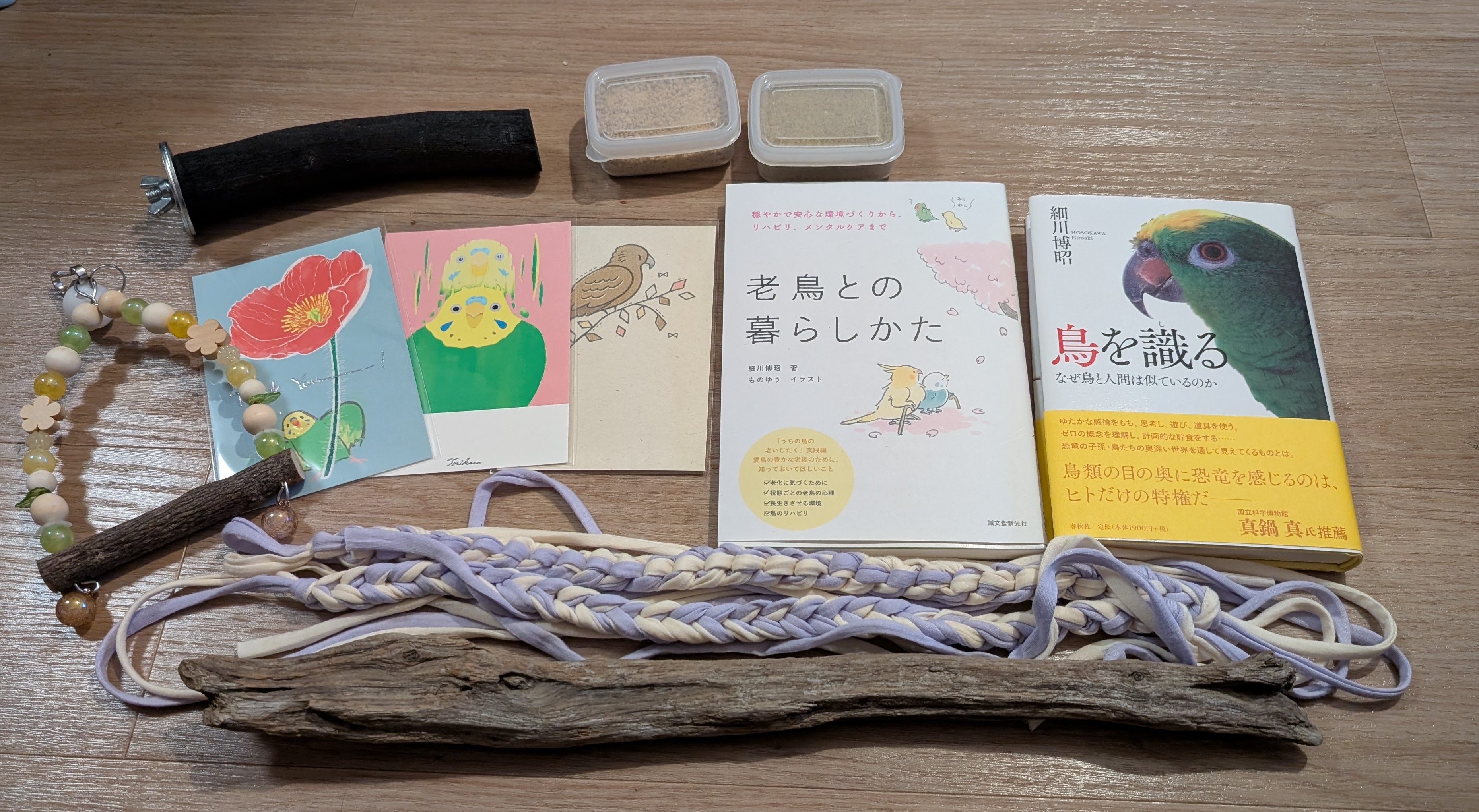 はじめに 2025年最初のインコ記事です。 1月18日に「鳥フェス浅草2025」に行ってきたので、 そこで購入した物などを紹介したいと思います。 また、今週のれもんとぐぐもあわせて記録しておきます。 今年もよろしくお願いいたします。 鳥フェス浅草2025の公式サイトです↓ ことりカフェ:鳥フェス浅草2025 関連記事 前回の日記 2024年12月29日の日記です。 我が家のインコ「れもん&ぽぽ&ぐぐ」の日記18 : 2024年に感謝&2025年もよろしくお願いします 我が家におけるインコの飼育方法 2024年の我が家でのインコの飼育方法をまとめました。 インコの飼い方と注意点(2024年版) 注意点 私たちは鳥を初めて飼うため飼育方法に誤りがあるかもしれません。 これからセキセイインコやズグロシロハラインコなどを飼うという方はこのブログの情報を鵜呑みにせず、参考程度に読んでいただけますと幸いです。 いかなる場合でも責任は負えませんのでご了承ください。 鳥フェス浅草2025 2025年1月18日と19日に開催された「鳥フェス浅草2025」に行ってきました。 とても大きな会場でたくさんの人で賑わっていて大盛り上がりでした。 様々な鳥関連のグッズもあって満足度が高いです。 また、浅草もとても活気のある街で観光地としても面白かったです。 購入した物です↓ 購入物 細川先生にお会いできて購入した書籍にサインもいただけました! (我が家のれもんの写真を掲載していただいた書籍にサインをいただこうと思ったのですが、 バタバタして家に忘れてしまいました。 またお会いできた時の楽しみにとっておきたいと思います) 『鳥を識る』↓ 『鳥を識る』 『老鳥との暮らしかた』↓ 『老鳥との暮らしかた』 水彩でフクロウの絵などを描いていらっしゃるそばがらさん(X ID: @sobagaranosoba)にれもんとぐぐの絵を描いていただきました! とても素敵な絵です。さっそく飾りました。 鳥のイベントはとても楽しいので定期的に参加したいですね。 今週のれもんとぐぐ 2025年も鳥たちは比較的元気に過ごしています(たまに体調悪そうな時もあって心配もありますが、様子を見つつ楽しく暮らしています)。 今週のれもん↓ 今週のれもん 今週のぐぐ↓ 今週のぐぐ おわりに 2025年になったばかりですが、もうすぐ1月が終わってしまいますね。 どんどん時間が進んで何が何やら分からなくなっていく感覚もあります。 このブログで記録を残していろいろ忘れないように生きていけたらと思います。 今年もよろしくお願いいたします。 それでは、また。 流木に乗ったぐぐ↓ 流木に乗ったぐぐ 次回の日記 2025年3月12日の日記です。 我が家のインコ「れもん&ぽぽ&ぐぐ」の日記20 : 久しぶりのインコ日記