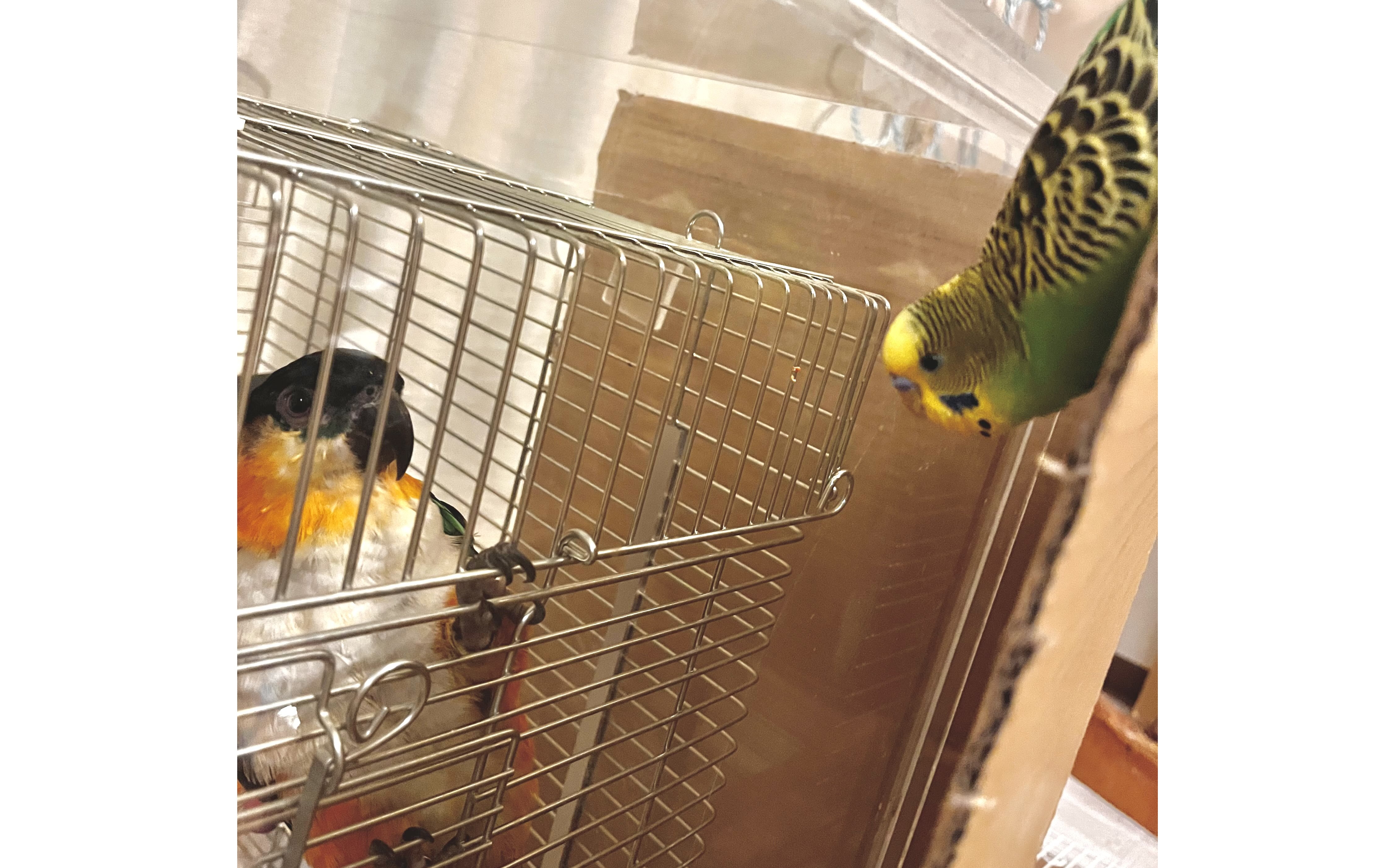 はじめに 特に理由はありませんが、最近はインコ日記を更新できていなかったので、 久しぶりのインコ日記となります。 セキセイインコのれもんとズグロシロハラインコのぐぐは、 相変わらず元気に暮らしています。 今回もいつものように記録を残しておきます。 二羽が睨み合う様子↓ 二匹の邂逅 関連記事 前回の日記 2025年1月26日の日記です。 我が家のインコ「れもん&ぽぽ&ぐぐ」の日記19 : 鳥フェス浅草2025に行ってきました! 我が家におけるインコの飼育方法 2024年の我が家でのインコの飼育方法をまとめました。 インコの飼い方と注意点(2024年版) 注意点 私たちは鳥を初めて飼うため飼育方法に誤りがあるかもしれません。 これからセキセイインコやズグロシロハラインコなどを飼うという方はこのブログの情報を鵜呑みにせず、参考程度に読んでいただけますと幸いです。 いかなる場合でも責任は負えませんのでご了承ください。 今週のインコ れもんはいつも通り元気です。 もうすぐで1歳になるため、子供から大人へと成長していっているようです。 れもん れもんは夢中になると逆さまになっていても気にしません。 れもんのおしり ぐぐも相変わらず目がクリクリで甘えん坊です。 ぐぐ ドアップのぐぐ↓ ドアップのぐぐ おすましのれもん↓ おすましのれもん モデルのような写真↓ モデルのような写真 おわりに 今回は短いですがこれで終了です。 れもんもぐぐも元気に暮らしています。 この調子で末永く元気に成長していってほしいですね。 人間側も楽しく生活できるように頑張っていきたいです。 それでは、また。 次回の日記 2025年5月6日の日記です。 我が家のインコ「れもん&ぽぽ&ぐぐ」の日記21 : 2ヶ月ぶりのインコ日記