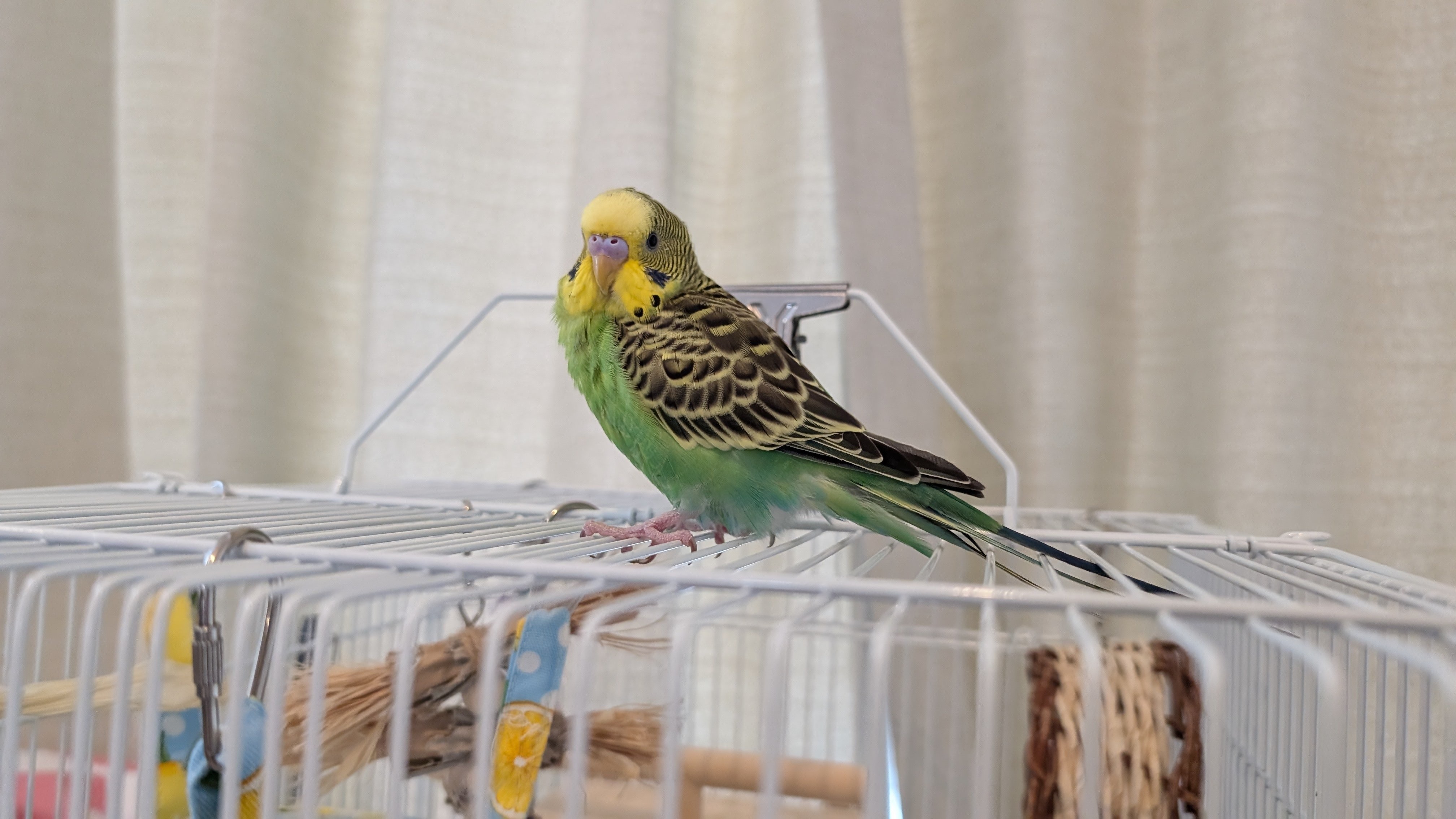 はじめに 我が家では現在、セキセイインコの「れもん」とズグロシロハラインコの「ぐぐ」を飼っています。 少し前まではズグロシロハラインコの「ぽぽ」もいました。 この記事では現状の我が家でのインコの飼育方法についてまとめようと思います。 ただし、必ずしもこの記事の情報が正しいわけではないため、参考程度に読んでいただけますと幸いです。 正確な情報については動物病院やペットショップ、書籍などでご確認をお願いいたします。 我が家のセキセイインコ「れもん」↓ れもん 我が家のズグロシロハラインコ「ぐぐ」↓ ぐぐ インコ日記の記事 我が家のインコたちの日記も書いています。 下記のリンクが現在の最新記事です。 我が家のインコ「れもん&ぽぽ&ぐぐ」の日記14 : 大人に近づくれもんと遊ぶ余裕が出てきたぐぐ 飼育環境の準備 まずはインコ(雛鳥ではない)の飼育に必要となる物を準備します。 雛鳥の場合は必要な物が異なりますのでご注意ください(雛鳥の飼育方法についてはペットショップで確認すると良いと思います)。 インコが暮らすことになる鳥籠(インコの大きさに合ったもの) 動物病院へ連れていく時などの外出時用キャリーケージ(小さい鳥籠、キャリーケージを入れるリュックサックもあると便利) 鳥籠の扉が開かないようにするバックルなど(外出時にインコが勝手に扉を開けないように) 温度調整のためのヒーター(ワット数を要確認) 温度センサが付いたサーモスタット(自動温度調節器のこと、必須) 太陽光ライト(インコも日光に当たる必要あり) 温度計(湿度も計測できるとよい) 体重計(0.1g単位で計測できるとよい) シードやペレットなどのエサ(ちゃんと食べてくれる物を用意する) エサ入れ、水入れ(複数あると使い回せて便利) 止まり木(太さを要確認、複数あると良い) おやすみカバー(鳥籠を覆う布、寝る時にかけてあげる) ビニールカバー(鳥籠の覆う透明のビニール、日中かけてあげる) アクリルケージ(保温、防音対策などが可能) 鳥籠の中に取り付けるおもちゃ(インコは遊ぶのが好き。暇だとストレスになる) 鳥籠の底に敷く新聞紙やペットシート(フンを受け止める) ペット用ウェットティッシュ(鳥籠掃除に便利) 鳥籠の置き場所を確保 次に鳥籠を配置する場所を確認します。 日光やエアコンの風が直接当たらず、騒がしくない場所を選ぶと良いとのことです。 日中は多少音があってもよいと思いますが(インコもテレビの音などがあったほうが暇つぶしになる可能性もあります)、 インコが寝る時には静かな環境を作ってあげることが大切です。 我が家の鳥籠の様子はこんな感じです。 窓の近くではありますが、カーテンで直射日光を調整しています。 また、リビングなので多少騒がしくはなってしまいますが、 なるべく音を出さないように気をつけています。 ちなみに、我が家のれもんはテレビが好きなようですが、ぐぐは嫌いなようでダンボールで壁を作ってあげて見えないようにしています。 我が家の鳥籠の様子 動物病院を確認 インコを飼う前に、近所にある鳥を診てくれる動物病院を探しておきます。 通いやすくて評判の良い病院を選ぶと良いと思います。 犬や猫を診てくれる動物病院などよりも数が少ないため、あらかじめ確認しておくと安心です。 インコは少しの環境の変化で体調を崩すことも多いので、動物病院は必須だと思います。 ペットショップからインコを迎え入れる インコを取り扱っているペットショップへ足を運んで、迎え入れるインコを選びます。 元気で物怖じせず、人懐っこいインコを選ぶのが良いとされています(もちろん絶対ではありません)。 また、いつもの様子はどうか、ごはんをちゃんと食べているか、病気は大丈夫そうかも店員さんに確認すると良いと思います。 また、実際に手に乗せたり、触らせてもらったりして、インコの状態を確認することも重要です(店員さんが説明してくれると思います)。 我が家に来た日のれもん↓ 我が家に来た日のれもん インコを我が家へ迎え入れる インコを我が家へ連れてきたら鳥籠に入れてあげます (窓やドアは閉めて、外へ逃げ出さないようにご注意ください。また、万が一のことを考えて部屋の中の危険な物も排除しておくと良いと思います)。 ごはんと水も忘れずにあげます。 最初は環境の変化でインコが緊張していると思うので、放鳥(鳥籠の外で遊ばせてあげること)はまだせずに休ませてあげると良いと思います。 まずは家や鳥籠に慣れてもらうことが重要です。 ごはんについて 基本的には必要な栄養が入っているペレットが良いですが、ペレットを食べないインコもたくさんいるため、 まずはペットショップで食べていたごはんをそのままあげるのが良いとのことです。 ペレットではない場合は、足りない栄養を他の食べ物や水に溶かすなどして補う必要があります。 ちなみに、我が家のぐぐはペレットを食べてくれますが、れもんはシードばっかり食べています。 また、ごは