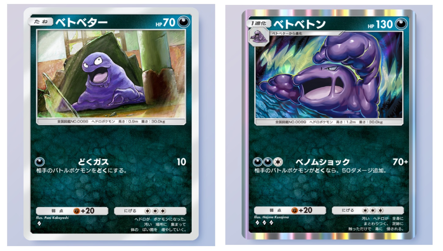はじめに 概要 ポケモントレーディングカードゲームポケット(以下、ポケポケ)においてずっとベトベトンデッキを使っています。 新しいパックである「超克の光」が登場して、 アルセウスexやリーフィアex、カイなど強いカードが増えましたが、 まだまだベトベトンデッキも強いのでおすすめします。 ベトベトン 前回の記事:ベトベトンデッキの紹介 前回は「時空の激闘」環境におけるベトベトンデッキを紹介しました。 ポケポケブログ3:「時空の激闘」環境でもベトベトンデッキを使いたい 公式サイト 下記がポケポケ公式サイトのリンクです。 ポケポケ公式サイト デッキレシピ ベトベトン+マタドガス+ダークライexのデッキレシピです。 ベトベター x2 ベトベトン x1 ドガース x2 マタドガス x2 ダークライex x2 キョウ x2 博士の研究 x2 モンスターボール x2 ゴツゴツメット x2 ナツメ x1 アカギ x2 前回と同じデッキ構成です。 ベトベトンデッキと言ってはいますが、 主軸はマタドガスとダークライexです。 ベトベトンは壁として優秀で、 現在は1枚だけしか入れていませんが、 2枚入れても強いかもしれません。 特にゴツゴツメットで相手にダメージを与えつつ、 キョウで手札に戻せるのが強いです。 ベトベトン ダークライexは現環境でも相変わらず強くて、 使っている人もかなり多いと思います。 特性がかなり強力でエネルギーを1つ付けるだけで相手に20ダメージが入ります。 ベトベトンデッキの主力となります。 ダークライex マタドガスも現環境で相変わらず強いです。 エネルギー1つでワザが撃てて、 特性で相手を毒にできて、 ダークライexと組み合わせれば1ターンで60~70ダメージ与えられます。 マタドガス ベトベトンとマタドガスはキョウで手札に戻せます。 現環境でキョウを使っている人がどのくらいいるかは分かりませんが、 アカギが当たり前のように使用されている現環境においてキョウはかなり強いと思います。 ベンチに逃げてもアカギで前に出されてしまうので相対的に手札に戻すのが強いです。 ベトベトンもマタドガスも逃げるエネルギーが3つなので、 基本的にはキョウで手札に戻します。 ベトベトンはHPが130あるので、 一度相手ポケモンのワザを受けてからキョウで手札に戻すことで、 壁として活用できます (ベトベトンには申し訳ないですが、壁戦法はそこそこ強いです)。 ...